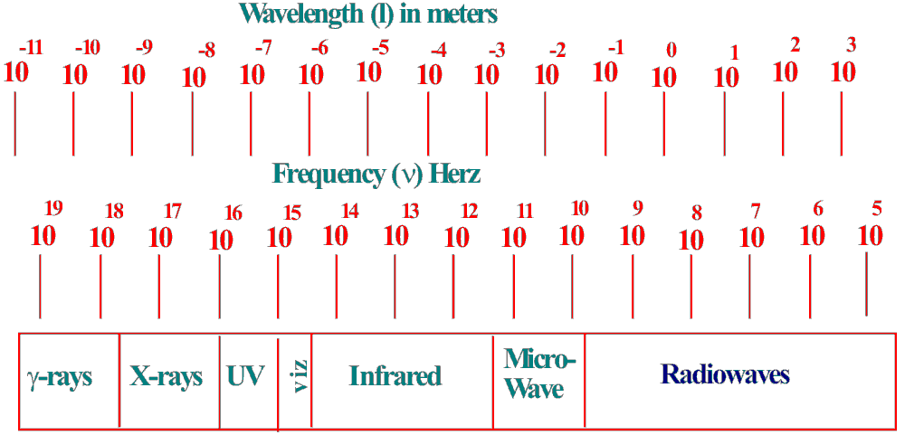 The relationship between wavelength and frequency for the different regions is shown in figure 2.