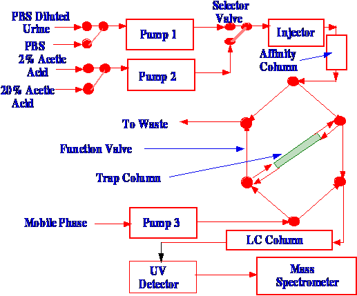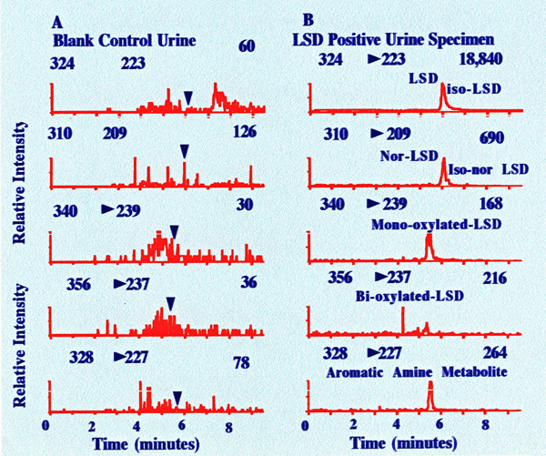 Cai and Henion [30] used a complex combination of sampling techniques to assay LSD and its analogs in urine. Affinity chromatography was fist employed to extract the substances of interest from the urine. The sample was then displaced from the affinity column and collected in a trap, from which the materials of interest were then displaced onto an LC column for separation.