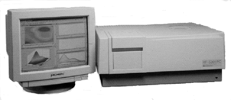 A typical example of a Fluorescence spectrometer is that manufactured by SHIMADZU for routine research and routine analytical purposes and is shown in figure 11. The compact, high sensitivity model of this range can handle extremely small samples and easily detect and determine trace concentrations of pollutants. Capillary cells having volumes of 5 μl or less are also available.