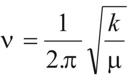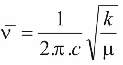 The frequency of a vibrational mode will depend on the mass at either end of the bond and the stiffness of the bond. The stiffness of the bond is defined by a proportionality constant called the force constant (k).