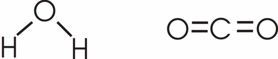 As already considered, there can be two basic forms of a molecule, a non-linear molecule and a linear molecule; a linear and non-linear molecules are typified by carbon dioxide and water and these are shown in figure 3.