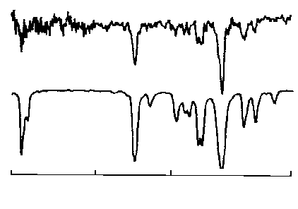 The Spectrum from 10 ng of material has sufficient IR absorption data to allow the identity of the solute to be confirmed by comparison with the library Spectrum shown below the sample Spectrum. Clearly, the system can be used to, either aid in structure elucidation, or confirm compound identity.