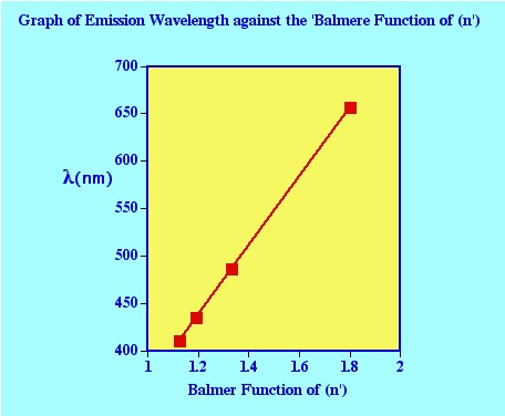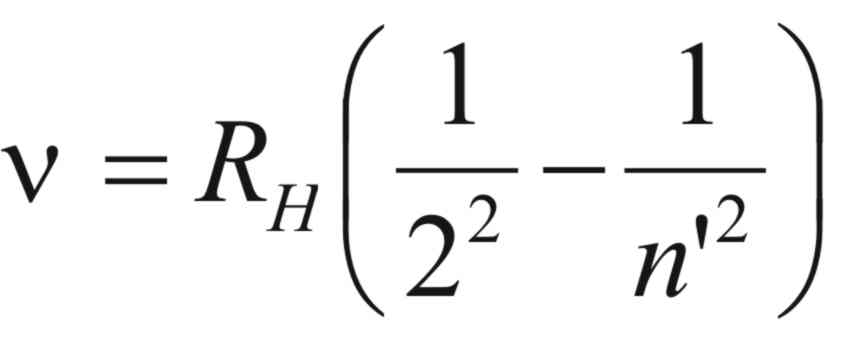 It is clear from the graph that the higher the energy change the shorter the wavelength of the emitted photon and that the individual spectral lines become closer and closer together. Examination of the equation of Balmer, it is seen that by simple algebraic manipulation and noting that, ν = c/λ, Ballmer’s equation can be put in the form of ,