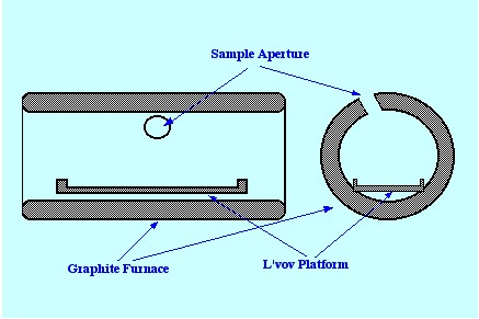 It was also found that the sensitivity of the analysis employing the graphite tube was improved by inserting a tungsten or tantalum tube inside the graphite tube and depositing the sample on the metal surface (as opposed to that of the graphite tube). It appeared that the metal surface acted in a similar way to the L’vov Platform. It was found that, by this procedure that detection limit for some 23 elements could be lowered by 3 to 100 fold and, at the same time, reduce the Atomization temperature by 200 to 900 C.