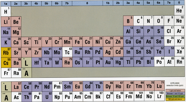 The sensitivities of the instrument to the different elements is given in the following chart. .