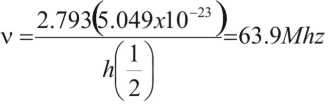 Now the nuclear magnet moment for the proton is 2.793 Bohr magnetrons (1 magnetron = 5.093 x 10-24 erg/gauss) and thus, if it is situated in a field of 15,000 Gauss, the frequency required to make the transition is given by,