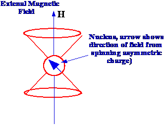 When a hydrogen nucleus is placed in a magnetic field the external field will act upon the spinning nucleus to try to change its spinning axis to be in line with the magnetic field.