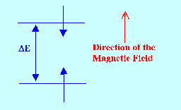 If the spinning nucleus is placed in a strong external magnetic field, the nucleus can adopt a small number of possible orientations. The hydrogen nucleus is permitted just two orientations, which can be in the direction of the magnetic field or opposite to the direction of the field. This situation is depicted in figure 1.