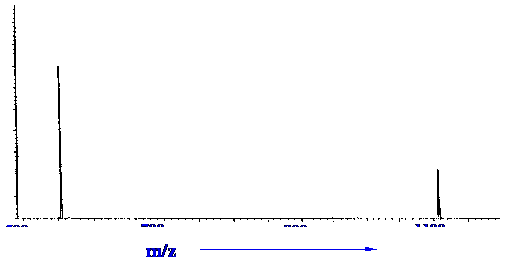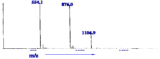 The data demonstrated that the peak at 876.0 m/z was not related to the other two and, furthermore, the peaks at 554.1 and 1106.9 were doubly and singly charged species of the same ion.