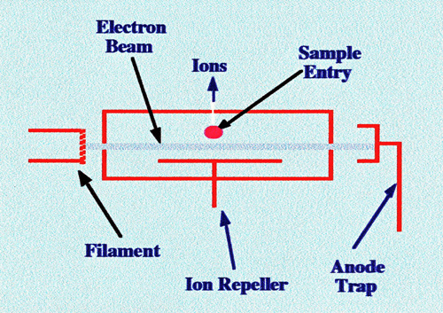 Electron impact ionization is generally a fairly harsh method of ionization but the energy used to produce the ions is controllable, which is practically an advantage. The procedure usually produces a range of molecular fragments that in most cases, helps to elucidate the structure of the molecule. However, although molecular ions are often produced, which is important for structure elucidation, sometimes only small fragments of the molecule are observed, with no molecular ion. Under such circumstances, alternative ionizing procedures may need to be used. A diagram of a simple electron impact ionization source is shown in figure 2.